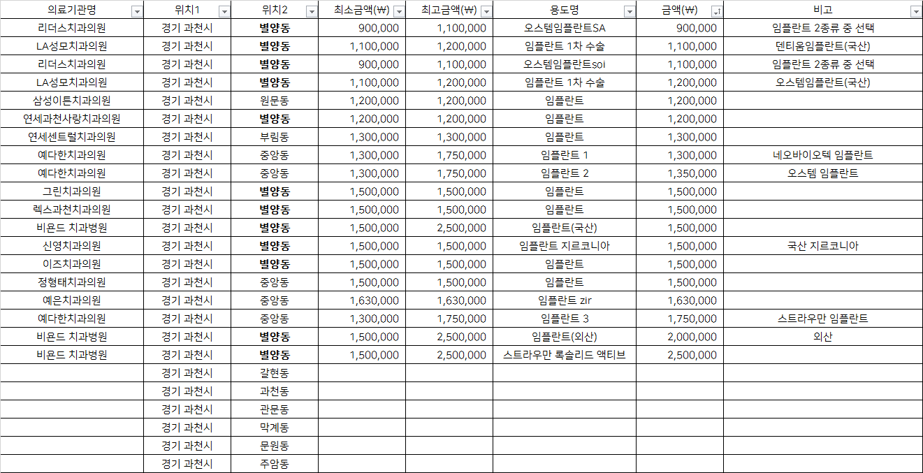 경기 과천시 지르코니아 임플란트 치과 가격 top5 리더스 LA성모 삼성이튼
