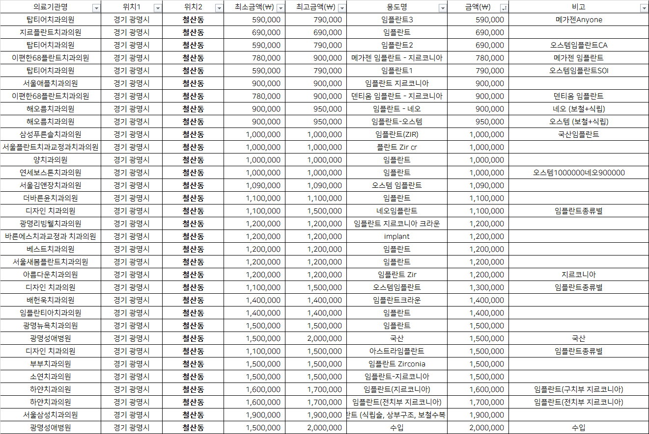 경기 광명시 철산동 지르코니아 임플란트 치과 가격 top5 탑티어 지르플란트 이편한68플란트