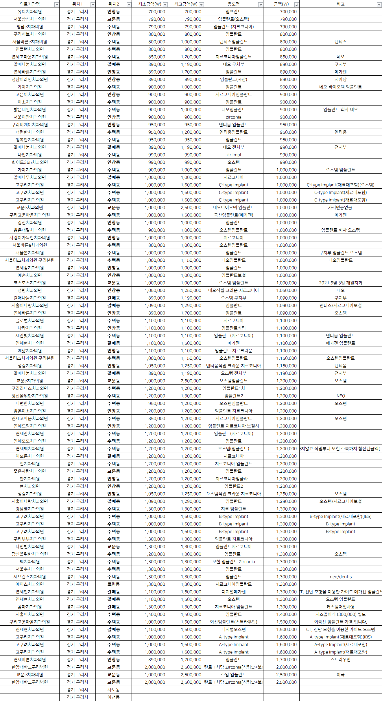 경기 구리시 지르코니아 임플란트 치과 가격 top5 유디 서울삼성 청담e