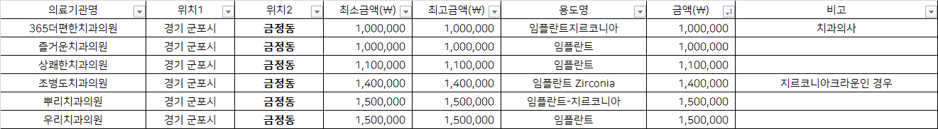 경기 군포시 금정동 지르코니아 임플란트 치과 가격 top5 365더편한 즐거운 상쾌한