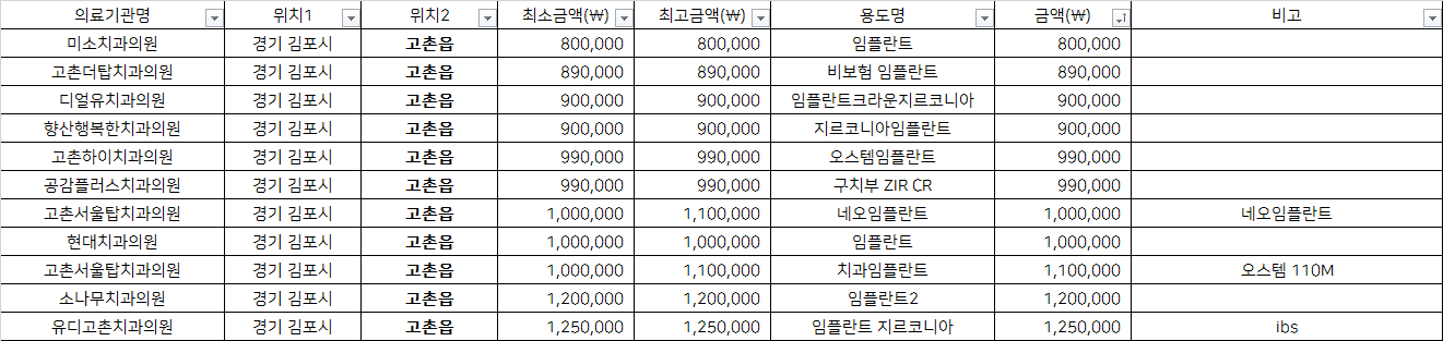 경기 김포시 고촌읍 지르코니아 임플란트 치과 가격 top5 미소 고촌더탑 디얼유
