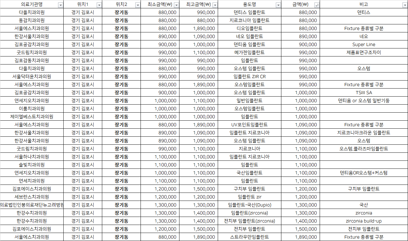 경기 김포시 장기동 지르코니아 임플란트 치과 가격 top5 다올 동감 서울에스