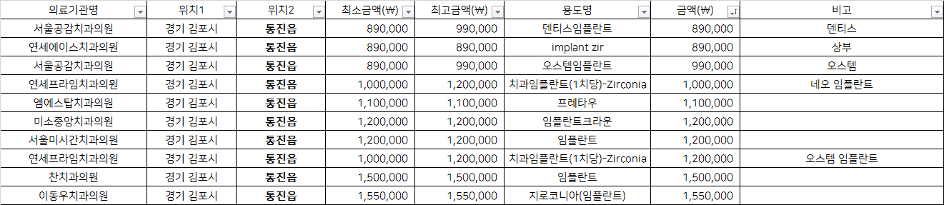 경기 김포시 통진읍 지르코니아 임플란트 치과 가격 top5 서울공감 연세에이스 연세프라임