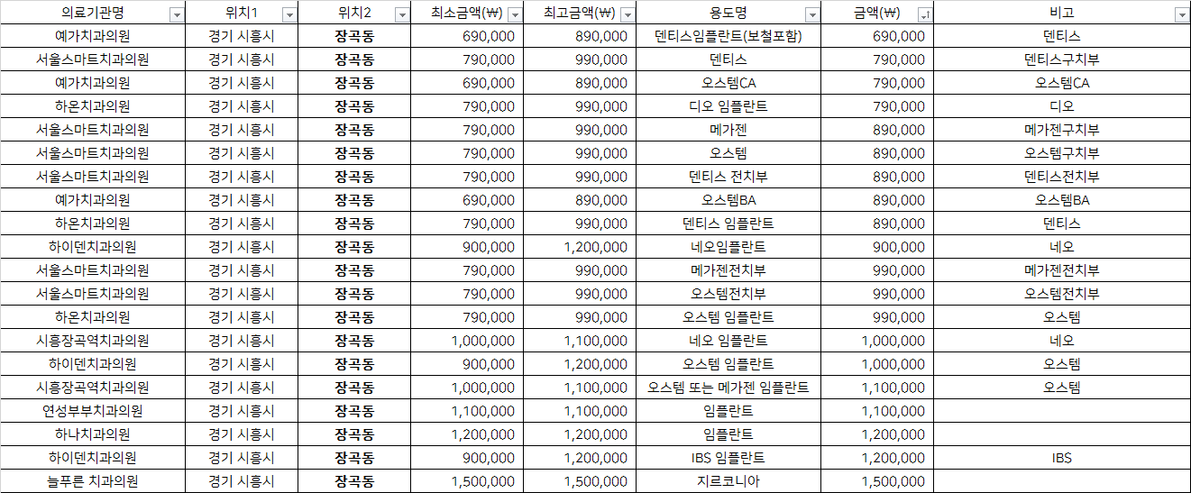 출처 : 건강보험심사평가원 비급여 진료비용 정보