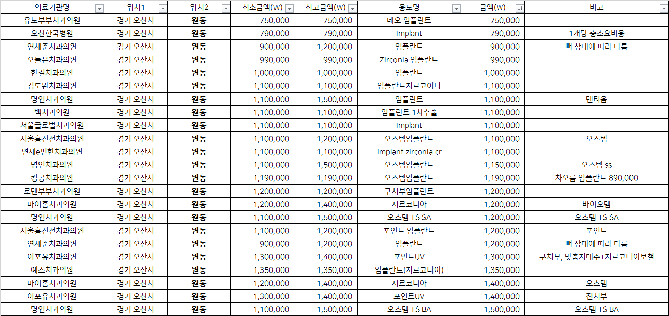 경기 오산시 원동 지르코니아 임플란트 치과 가격 top5 유노부부 오산한국병원 연세준