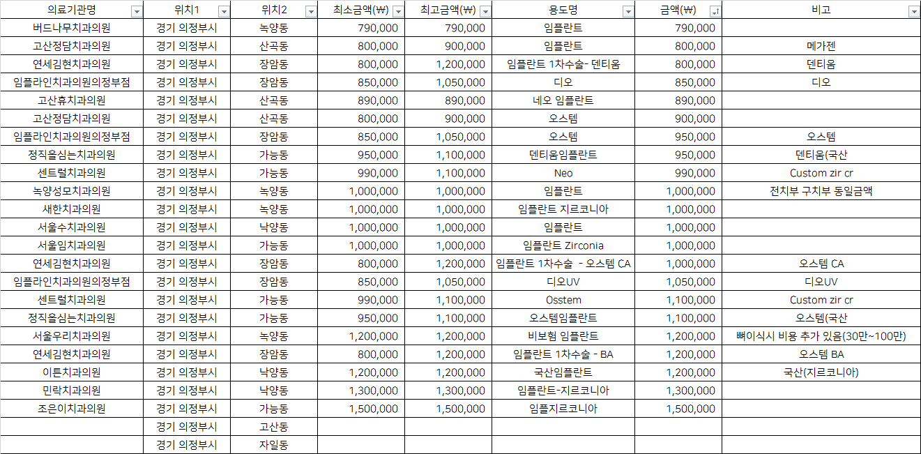 경기 의정부시 기타동 지르코니아 임플란트 치과 가격 top5 버드나무 고산정담 연세김현