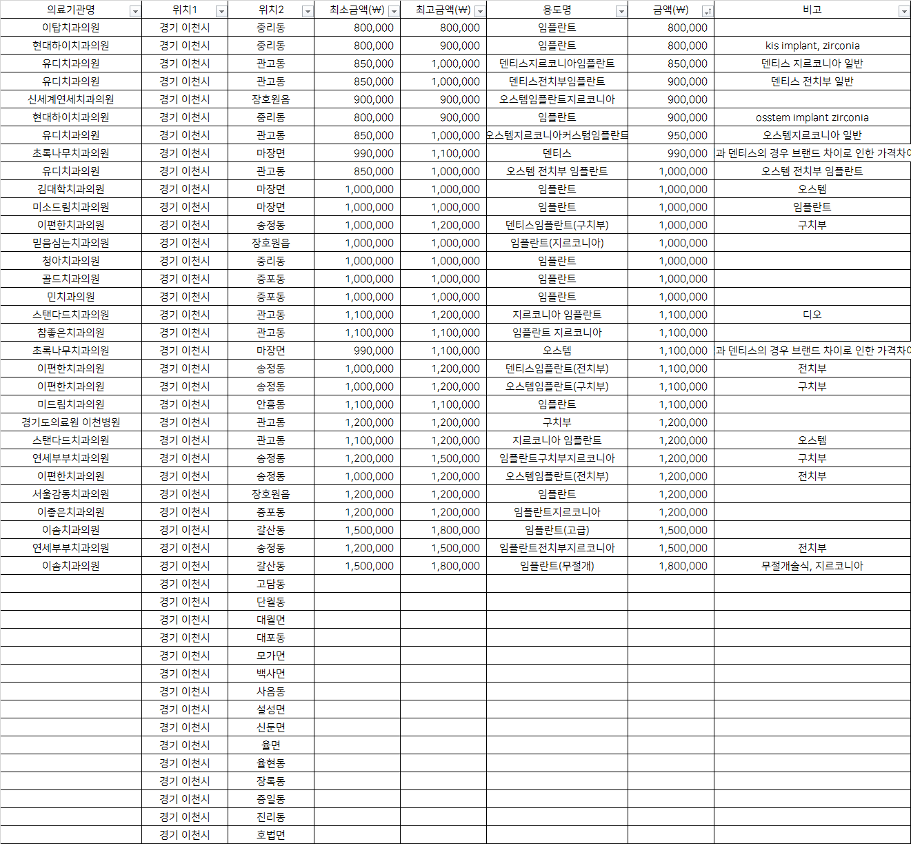경기 이천시 기타동 지르코니아 임플란트 치과 가격 top5 이탑 현대하이 유디