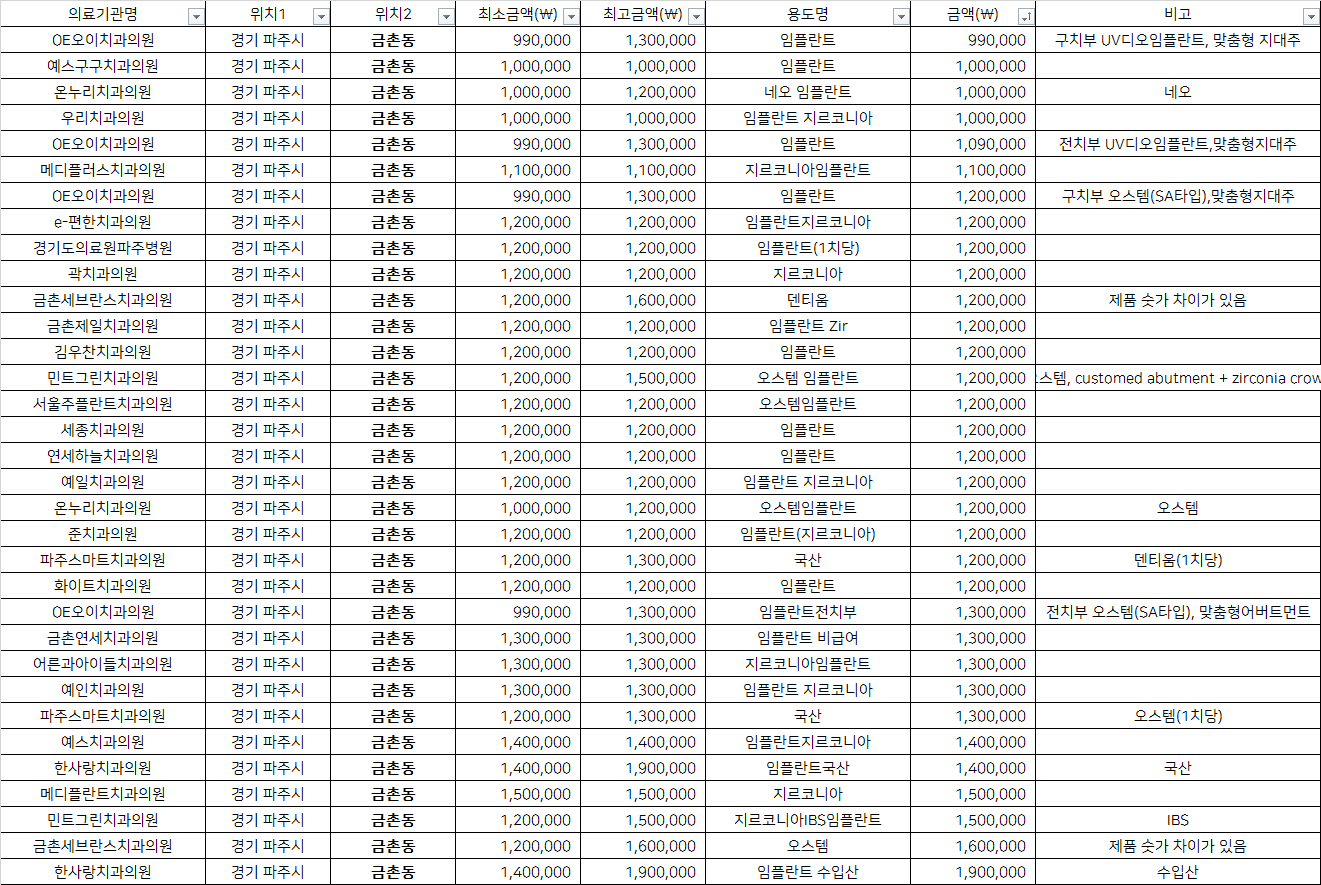 출처 : 건강보험심사평가원 비급여 진료비용 정보