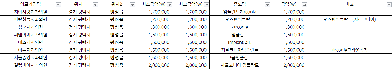출처 : 건강보험심사평가원 비급여 진료비용 정보