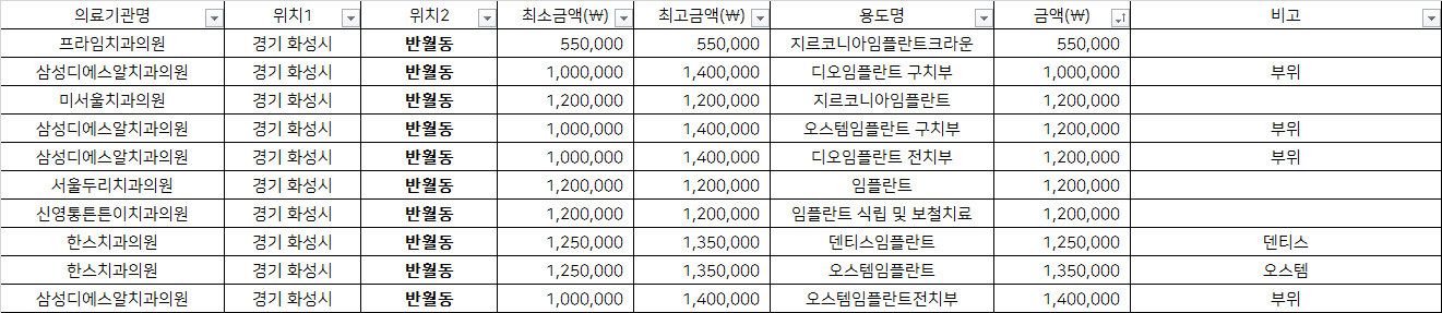 경기 화성시 반월동 지르코니아 임플란트 치과 가격 top5 프라임 삼성디에스알 미서울