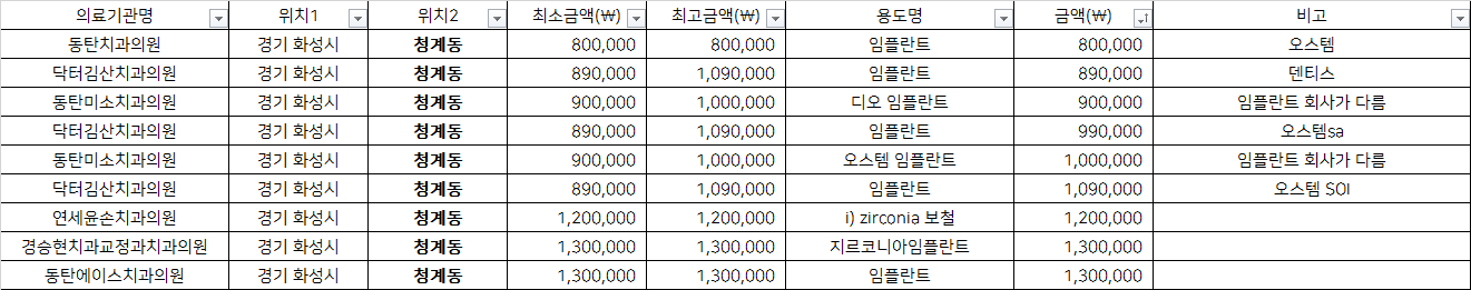 출처 : 건강보험심사평가원 비급여 진료비용 정보