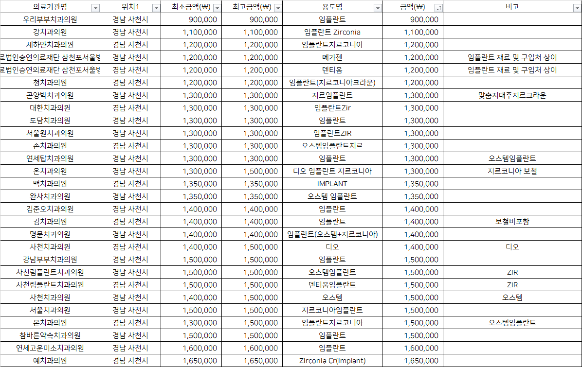출처 : 건강보험심사평가원 비급여 진료비용 정보