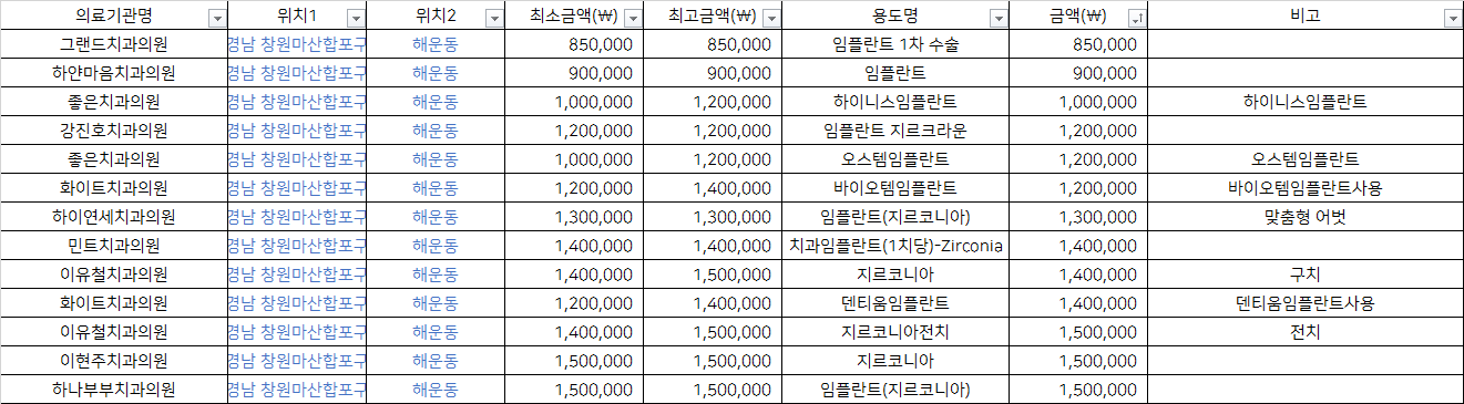 출처 : 건강보험심사평가원 비급여 진료비용 정보