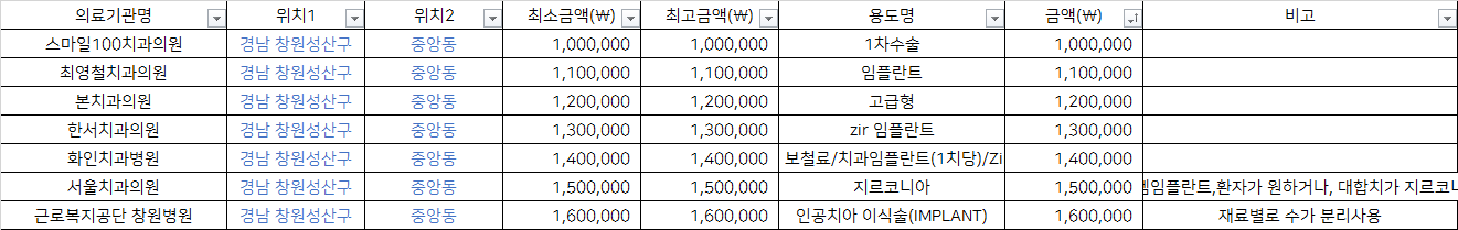 출처 : 건강보험심사평가원 비급여 진료비용 정보