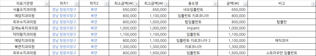경남 창원 의창구 북면 지르코니아 임플란트 치과 가격 top5 서울오 예담 최우수