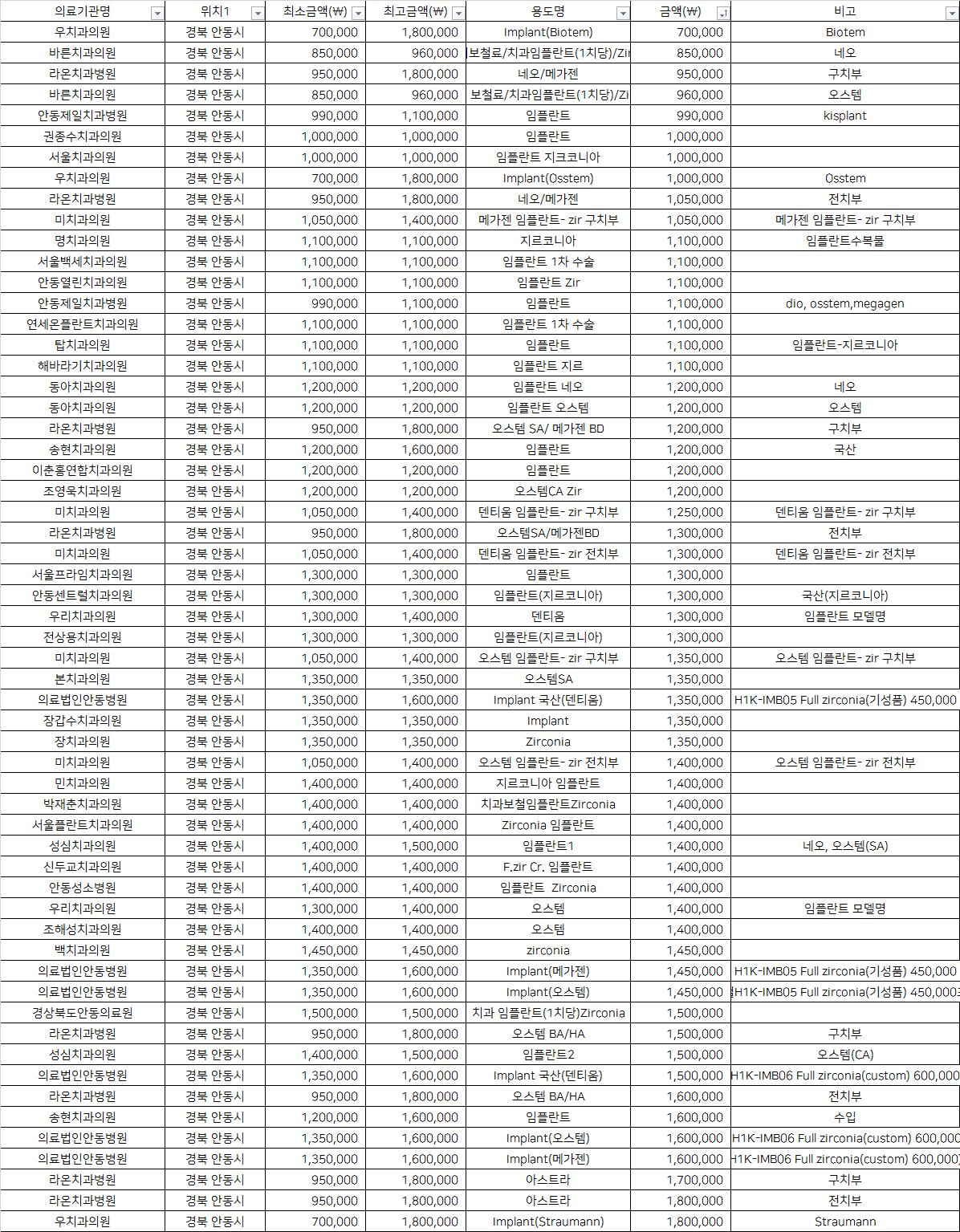 출처 : 건강보험심사평가원 비급여 진료비용 정보
