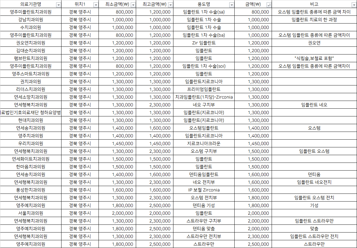 출처 : 건강보험심사평가원 비급여 진료비용 정보