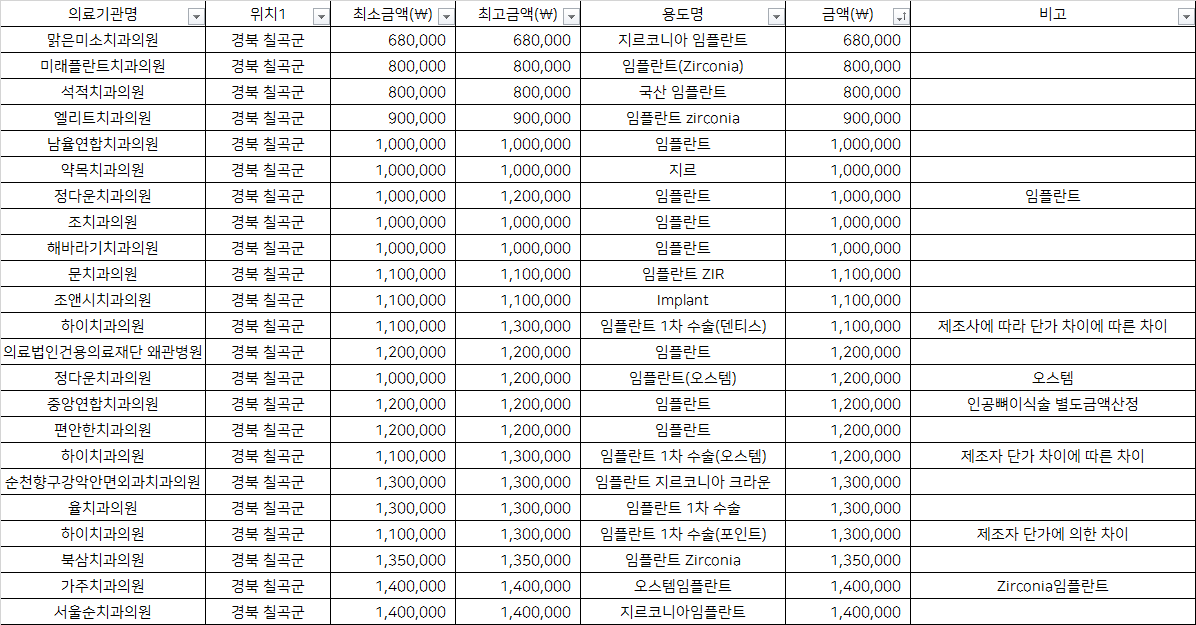 경북 칠곡 지르코니아 임플란트 치과 가격 top5 맑은미소 미래플란트 석적