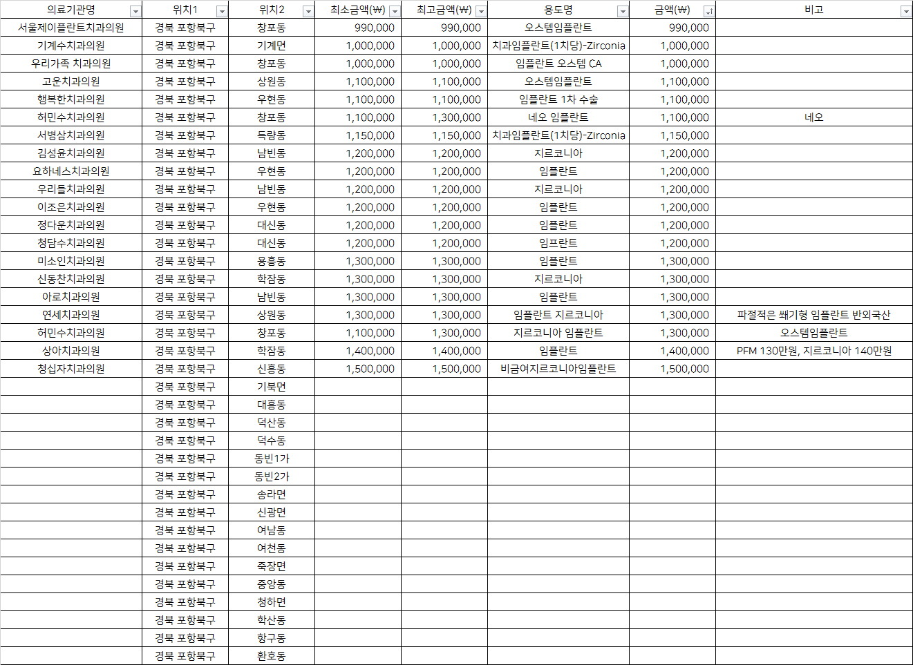 경북 포항 북구 기타동 지르코니아 임플란트 치과 가격 top5 서울제이플란트 기계수 우리가족