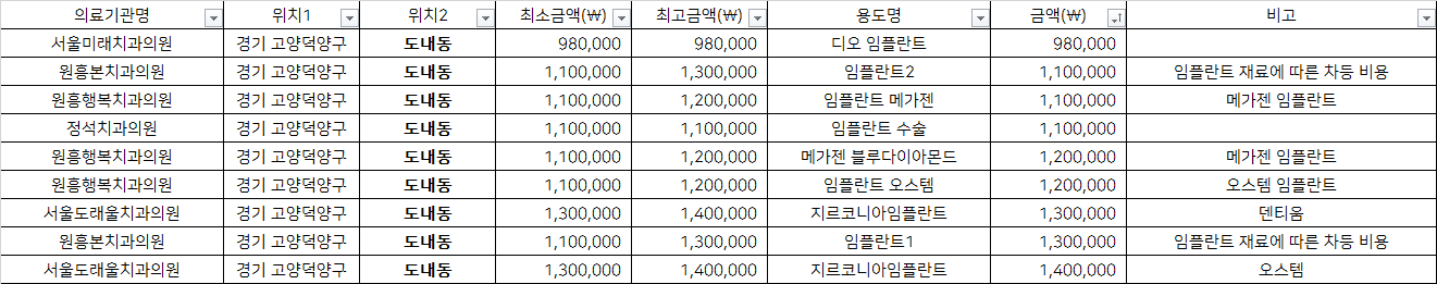 고양 덕양구 도내동 지르코니아 임플란트 치과 가격 top5 서울미래 원흥본 원흥행복