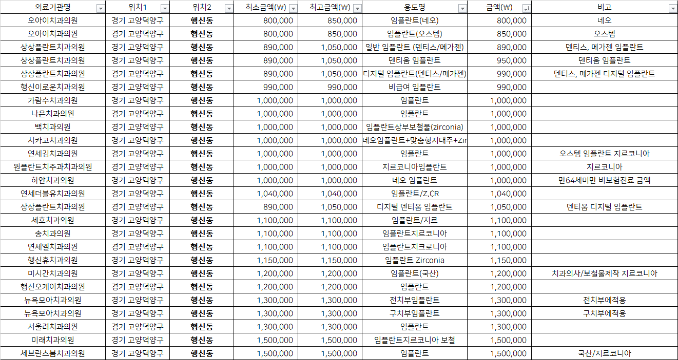 고양 덕양구 행신동 지르코니아 임플란트 치과 가격 top5 오아이 상상플란트 행신이로운
