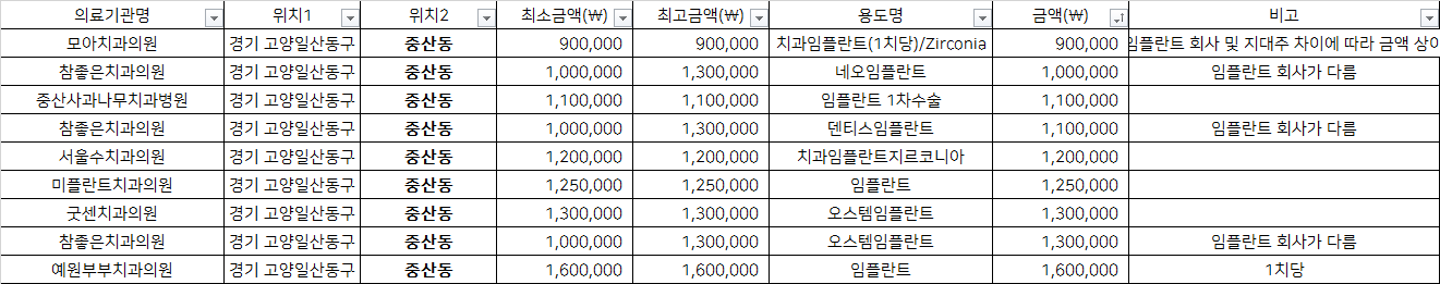 고양 일산동구 중산동 지르코니아 임플란트 치과 가격 top5 모아 참좋은 중산사과나무