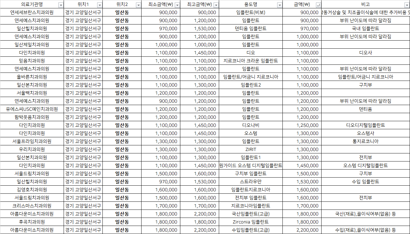 고양 일산서구 일산동 지르코니아 임플란트 치과 가격 top5 연세세브란스 연세예스 일산힐