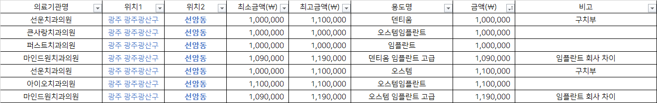 광주 광산구 선암동 지르코니아 임플란트 치과 가격 top5 선운 큰사랑 퍼스트