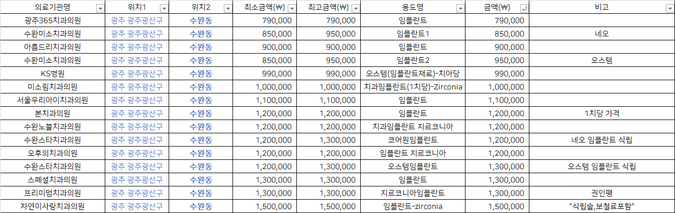 출처 : 건강보험심사평가원 비급여 진료비용 정보