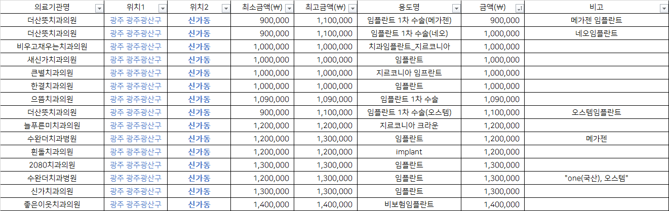 출처 : 건강보험심사평가원 비급여 진료비용 정보