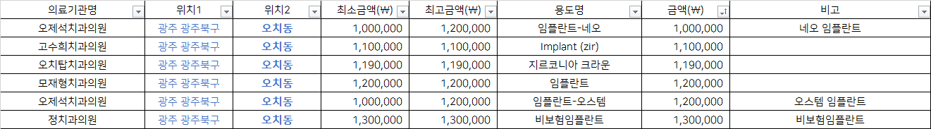 출처 : 건강보험심사평가원 비급여 진료비용 정보