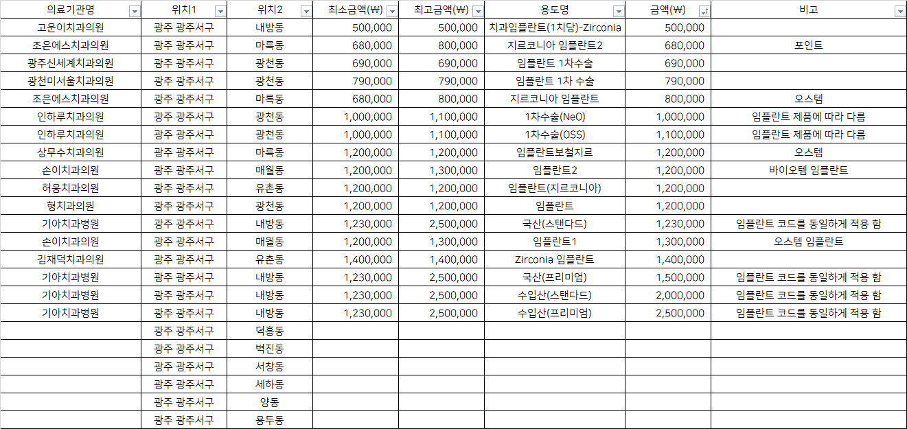광주 서구 기타동 지르코니아 임플란트 치과 가격 top5 고운이 조은에스 광주신세계