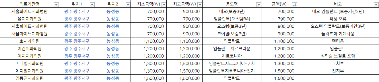 광주 서구 농성동 지르코니아 임플란트 치과 가격 top5 서울화이트 옳치 효