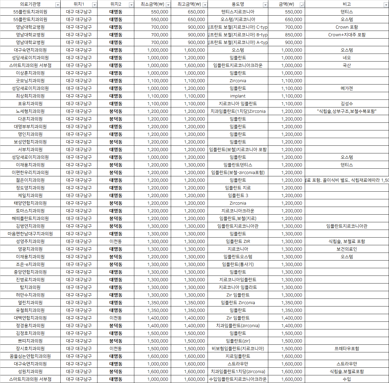 대구 남구 지르코니아 임플란트 치과 가격 top5 55플란트 영남대병원 대구숙면