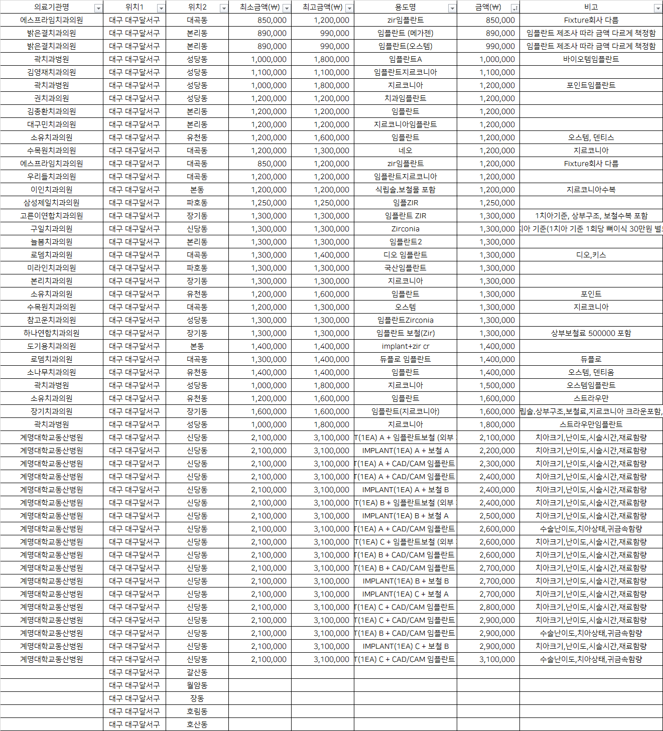대구 달서구 기타동 지르코니아 임플란트 치과 가격 top5 에스프라임 밝은결 곽
