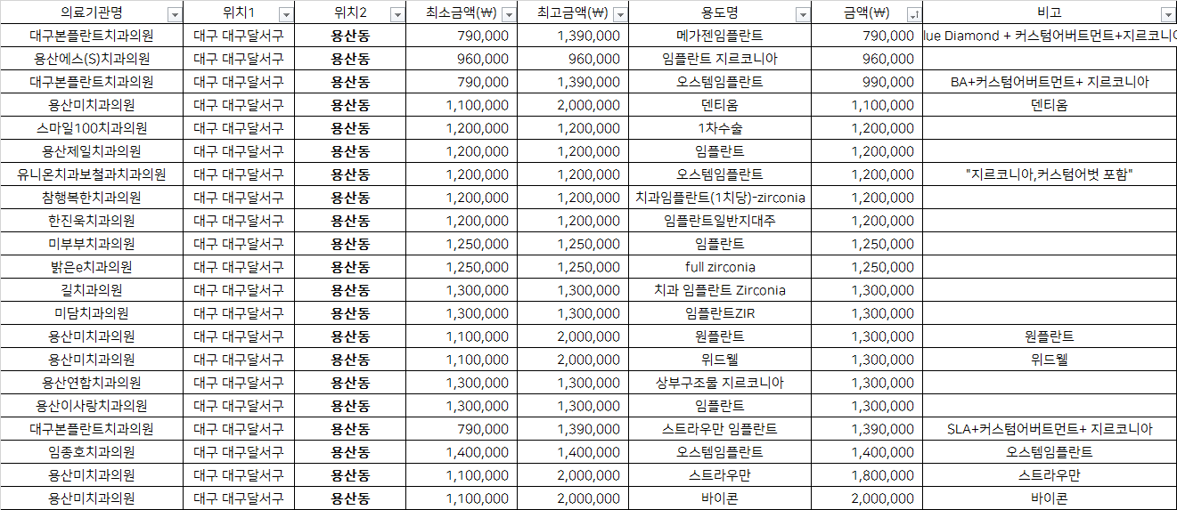출처 : 건강보험심사평가원 비급여 진료비용 정보