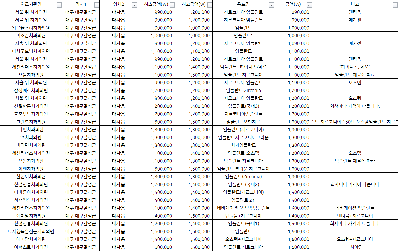 출처 : 건강보험심사평가원 비급여 진료비용 정보
