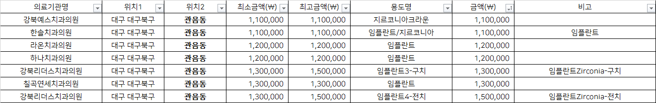 출처 : 건강보험심사평가원 비급여 진료비용 정보