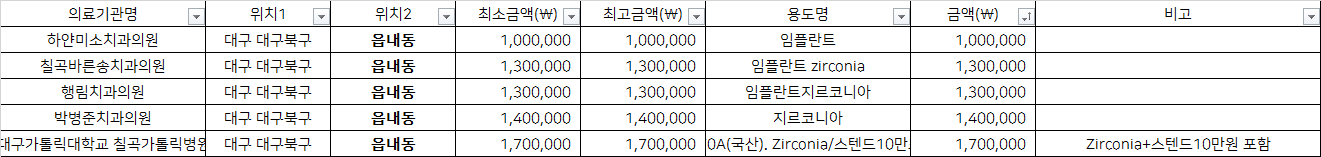 출처 : 건강보험심사평가원 비급여 진료비용 정보