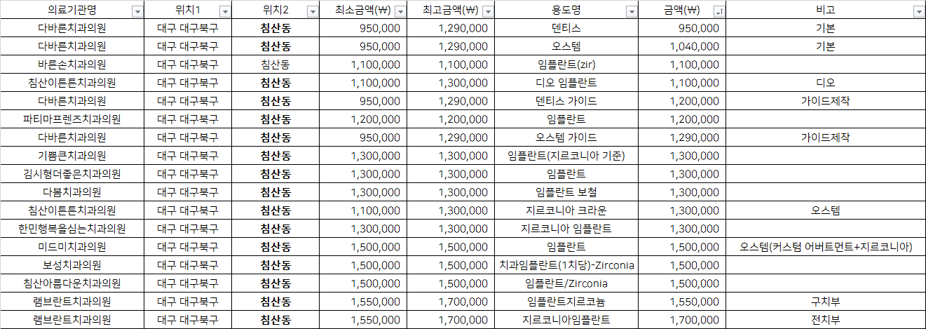 출처 : 건강보험심사평가원 비급여 진료비용 정보