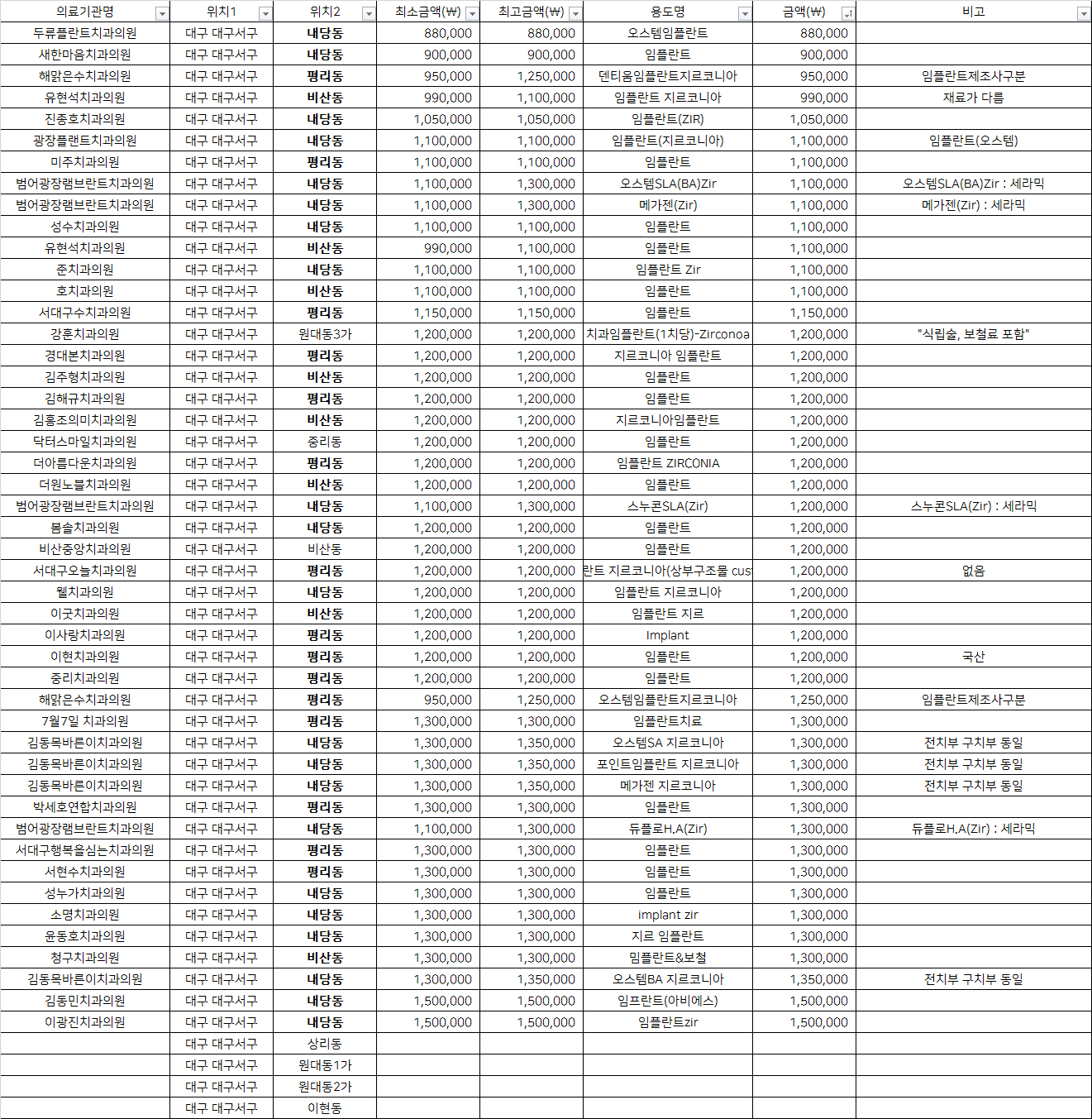 대구 서구 지르코니아 임플란트 치과 가격 top5 두류플란트 새한마음 해맑은수