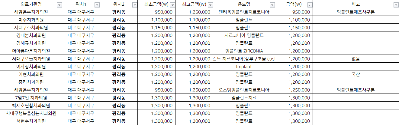 출처 : 건강보험심사평가원 비급여 진료비용 정보