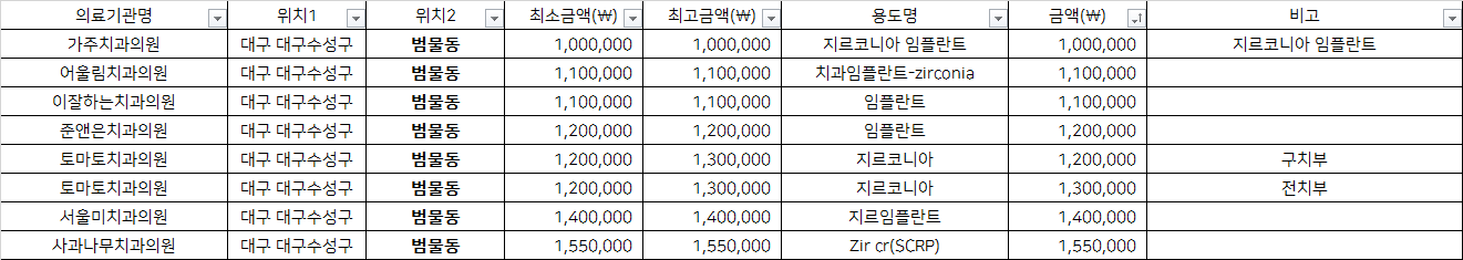 출처 : 건강보험심사평가원 비급여 진료비용 정보