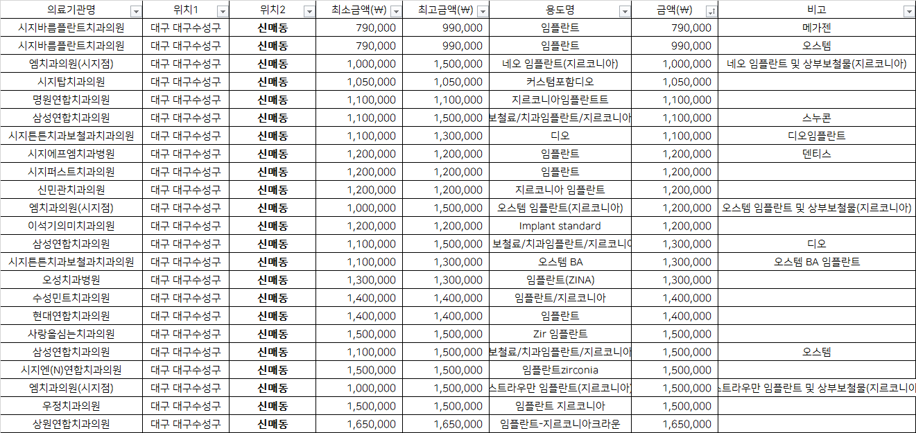 출처 : 건강보험심사평가원 비급여 진료비용 정보