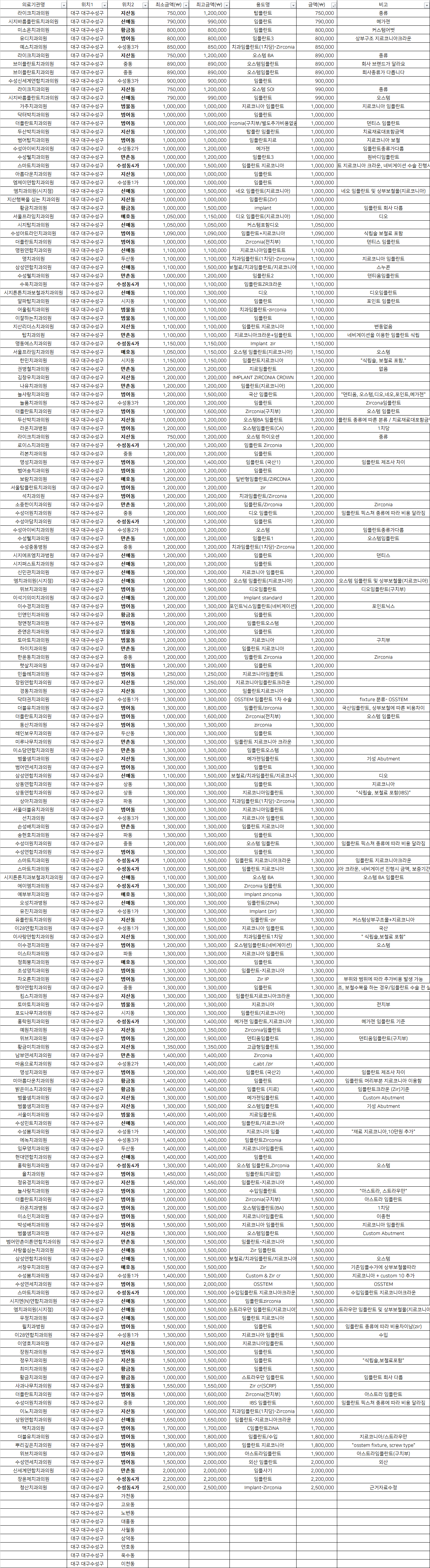 대구 수성구 지르코니아 임플란트 치과 가격 top5 라이크 시지바름플란트 미소온