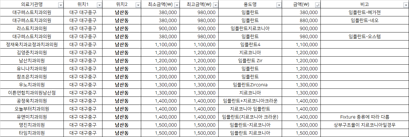 대구 중구 남산동 최저가 top5