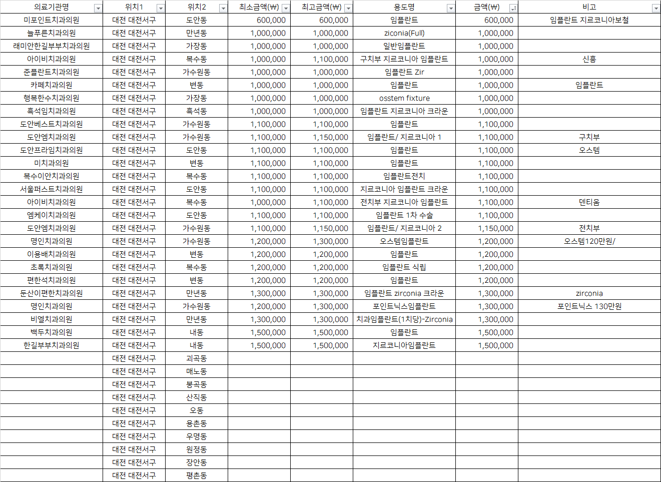 대전 서구 기타동 지르코니아 임플란트 치과 가격 top5 미포인트 늘푸른 래미안한길부부