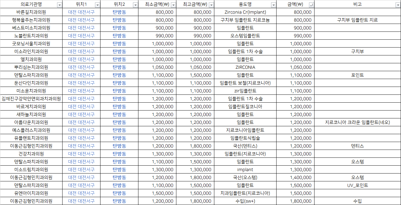 출처 : 건강보험심사평가원 비급여 진료비용 정보