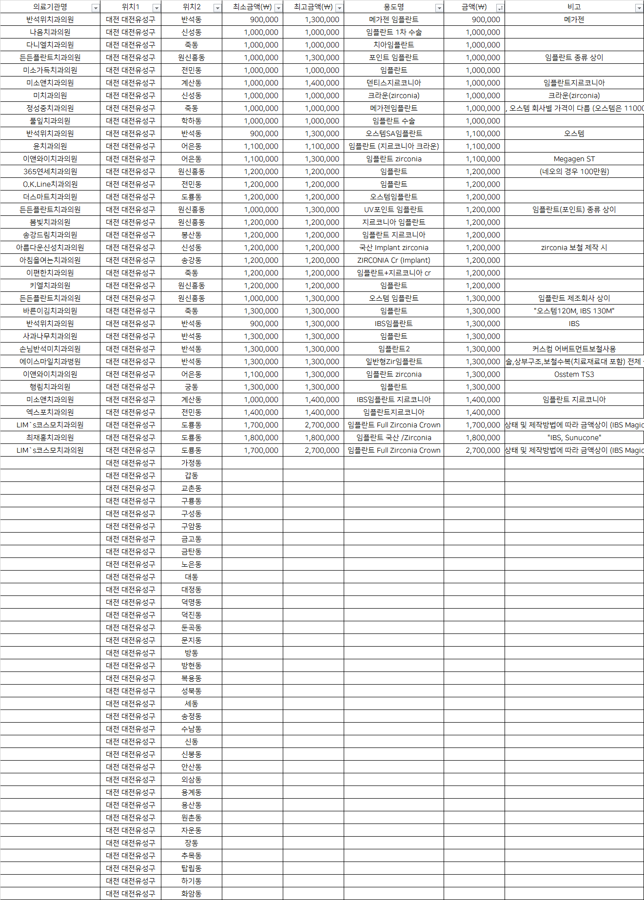 대전 유성구 기타동 지르코니아 임플란트 치과 가격 top5 반석위 나음 다니엘