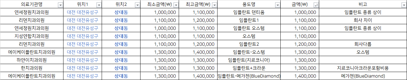 대전 유성구 상대동 지르코니아 임플란트 치과 가격 top5 연세정원 리덴 지성연합